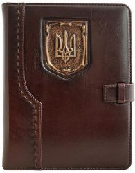 Ежедневник со сменными блоками Герб Украины - качественный органайзер с обложкой из натуральной кожи. Коричневый цвет лакированного рельефного изображения будет прекрасно гармонировать с портфелем, туфлями и кокер спаниелем, прогуливающимся в обеденный перерыв. Privilege - дневник имеет золотой срез страниц и может быть изъят и заменен любым другим, хоть и датированным формата А5. Высокое качество и долговечность - основные добродетели делового помощника, который вмещает девяносто страниц, плотностью сто двадцать пять грамм на метр квадратный.